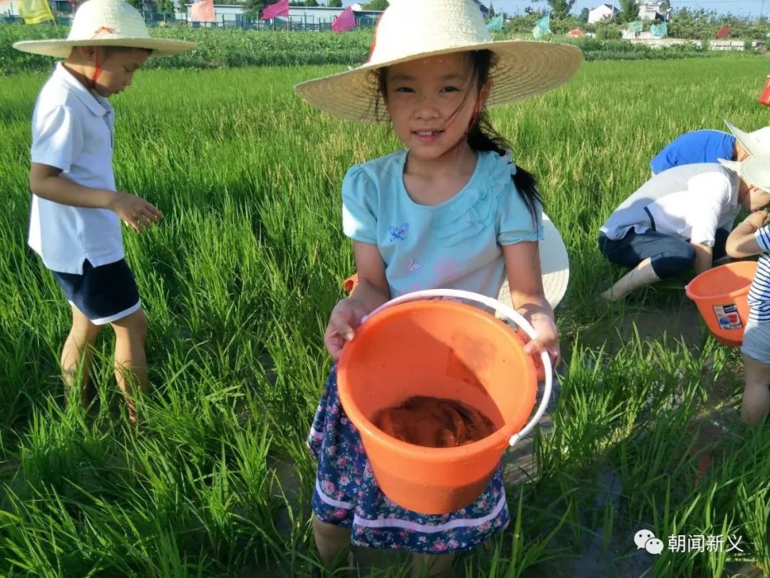 在稻田里奔跑撒欢捉泥鳅